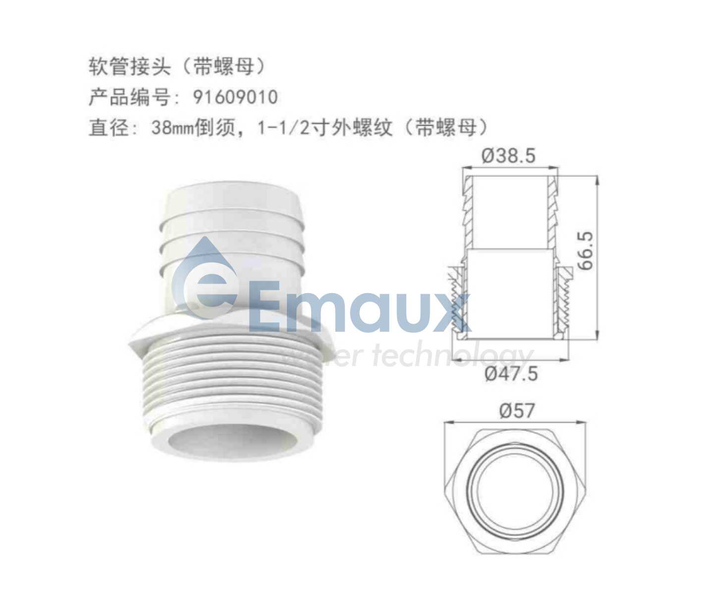 競技池直徑: 38mm倒須,1-1/2寸外螺紋(帶螺母)