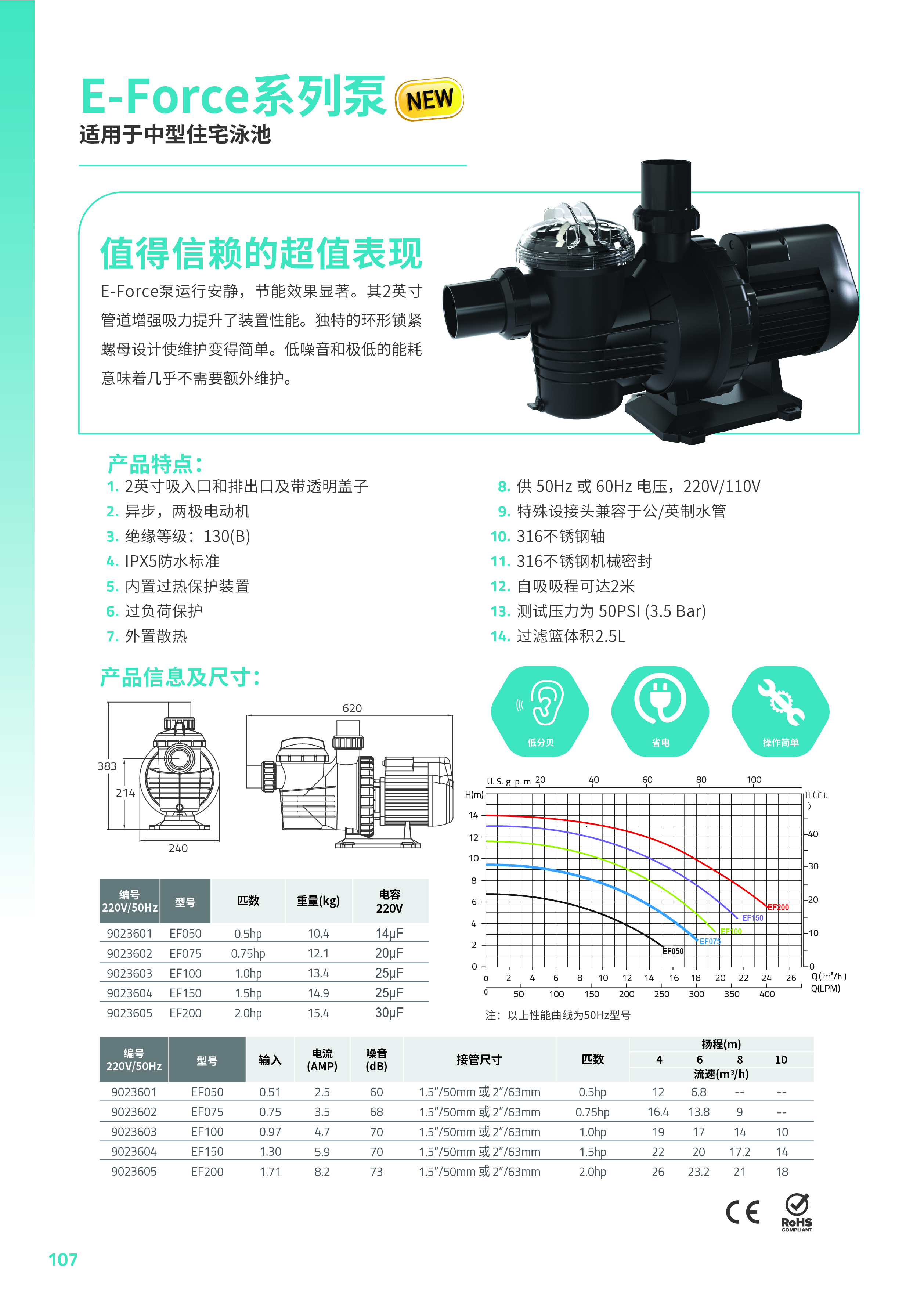 E-Force泵運行安靜,節(jié)能效果顯著。其2英寸 管道增強吸力提升了裝置性能。獨特的環(huán)形鎖緊 螺母設計使維護變得簡單。低噪音和極低的能耗 意味著幾乎不需要額外維護。