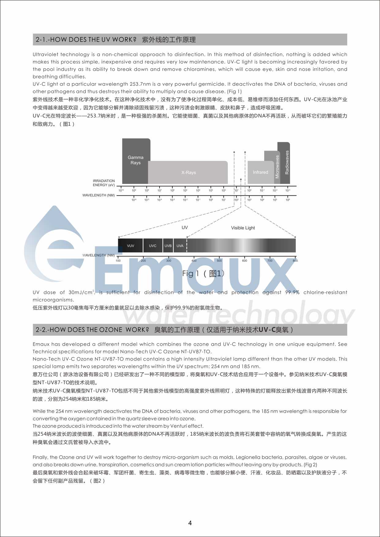 UV-C光在特定波長253.7納米是一個非常強大的殺菌劑,它可有效地殺死細菌DNA,病毒繁殖而引起的疾病。紫外線殺菌是一種非化學方式的消毒方法可避免導致眼睛、皮膚和鼻子過敏及呼吸困難的現象。紫外線殺菌還可以應用在水處理領域(殘余和飲用水)-泳池和魚池處理。同時紫外線的劑量為30mJ/cm2時,可有效對消毒并可以保護99.9%的抗氯鹽微生物。