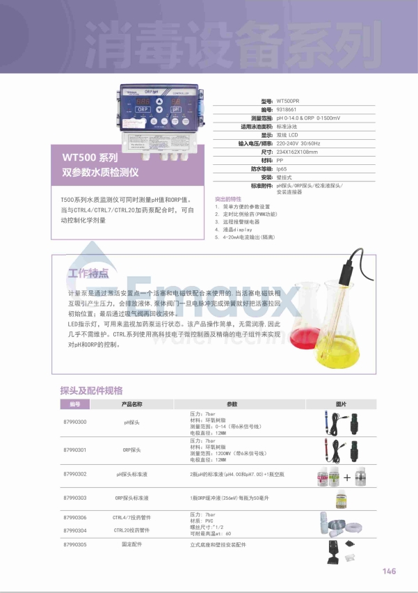 競技池T500系列水質(zhì)監(jiān)測儀可同時測量pH值和ORP值。 當(dāng)與CTRL4/CTRL7/CTRL20加藥泵配合時,可自動控制化學(xué)劑量